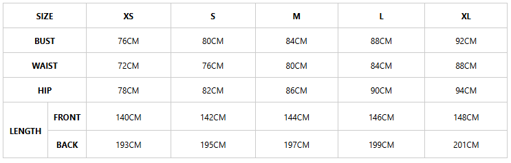 Garment measurements by size (in cm), please allow a measurement tolerance of 1-2 cm.