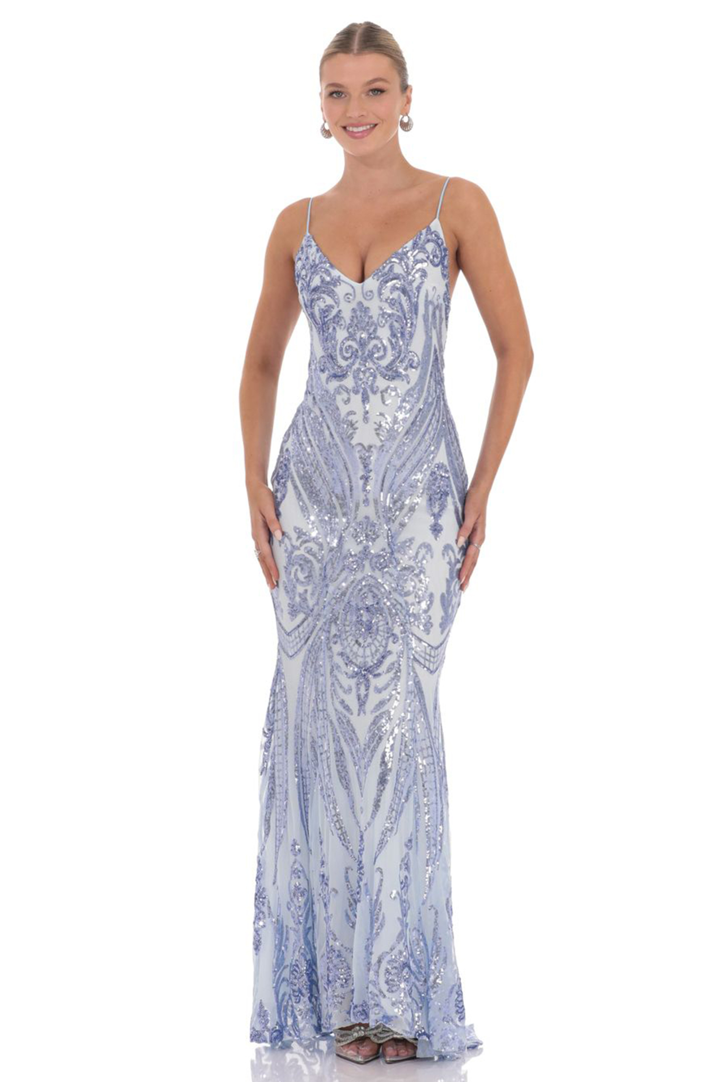 Sequin V-Neck Lace-Up Fishtail Maxi Dress